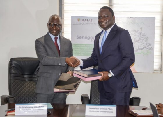 Le ministre de l’Agriculture, de la Souveraineté alimentaire et de l’Élevage, Mabouba Diagne, et le ministre des Infrastructures, Dethié Fall,…