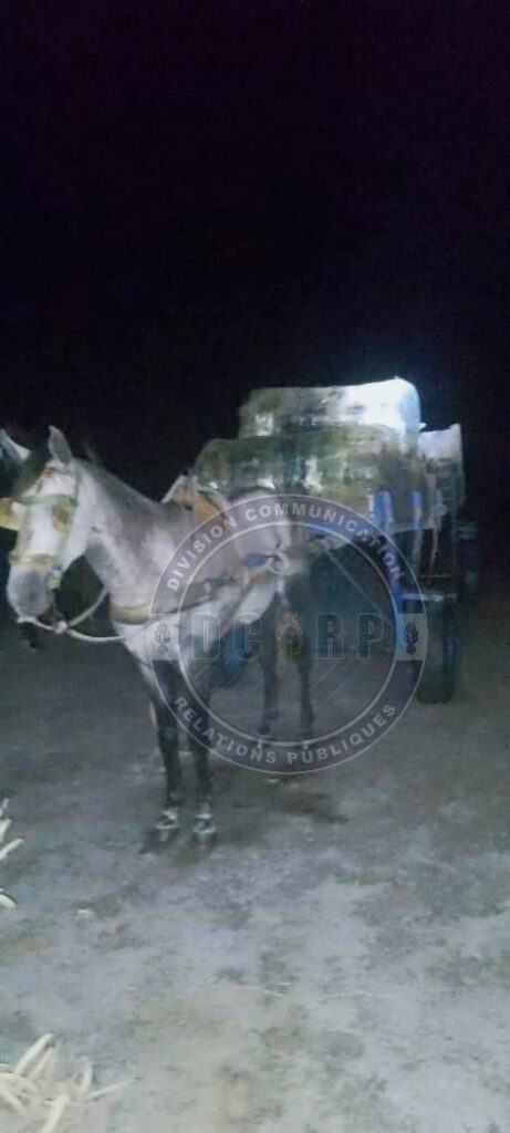 Le bilan de l’opération fait état de la saisie de dix-sept colis de 30 kg chacun, d’une pirogue, de deux moteurs hors-bord de marque Yamaha (40 et 15 chevaux), d’un cheval, de deux charrettes ainsi que d’un téléphone portable de marque Tecno.